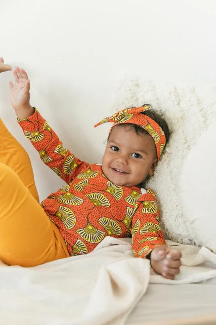 The Asaro collection by Ade + Ayo is named after the Yoruba word for yam porridge - a yummy yam delicacy common to Western Nigeria. The Asaro print makes ankara, a traditional pattern and fabric style common in West Africa, comfortable for the littlest among us. The Asaro Print Long Sleeve Onesie has been carefully crafted to keep your little one comfortable without compromising style. Made from GOTS certified organic cotton, these onesies are soft and safe for your baby's skin.